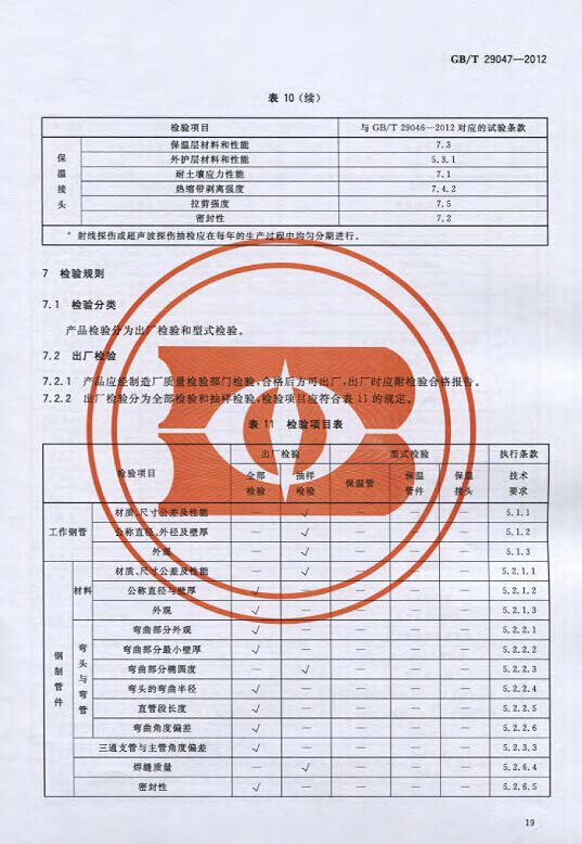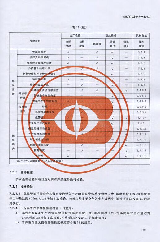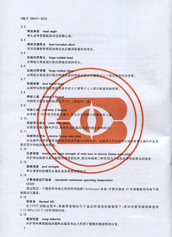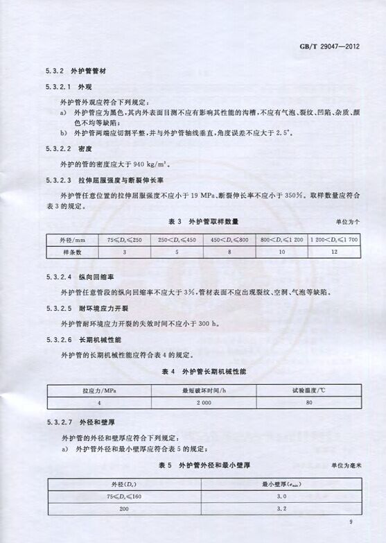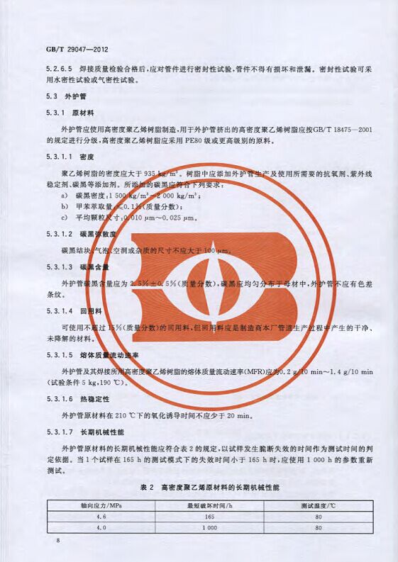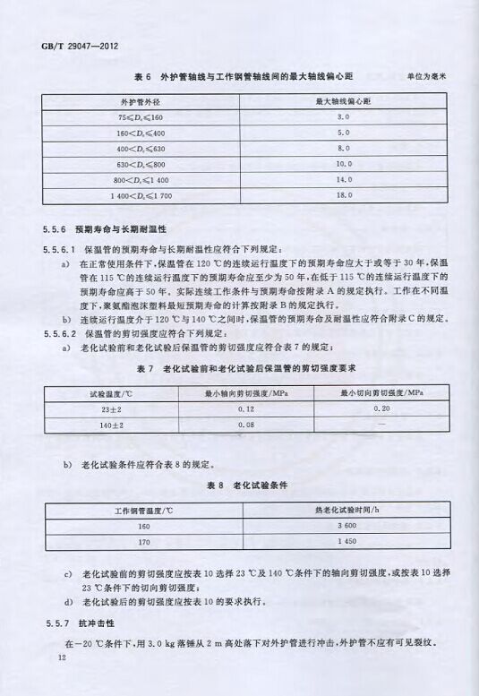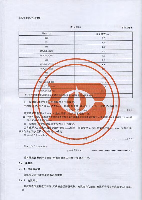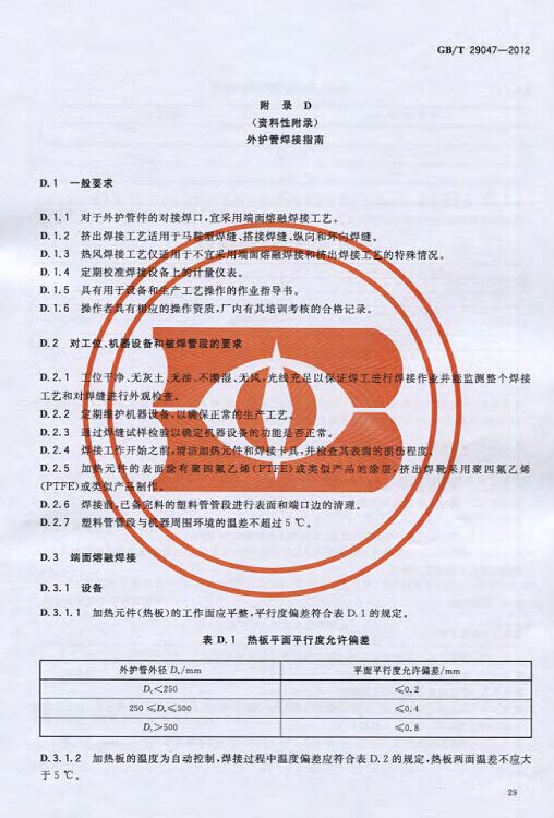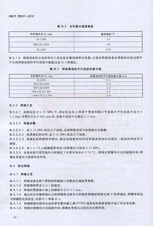 GB/T29047-2012 高密度聚乙烯外護管硬質聚氨酯泡沫塑料預制直埋保溫管及管件國家標準 來源:焱森高科裝備 日期:2016/5/3 瀏覽次數:1667 GB/T29047-2012 高密度聚乙烯外護管硬質聚氨酯泡沫塑料預制直埋保溫管及管件國家標準 上一篇:本公司生產的高密度聚乙烯預制直埋保溫管 上一篇:保溫鋼管的結構機理 分享到:0 用手機看 拍下二維碼,信息隨身看 試試用微信掃一掃,在你手機上繼續觀看此頁面。