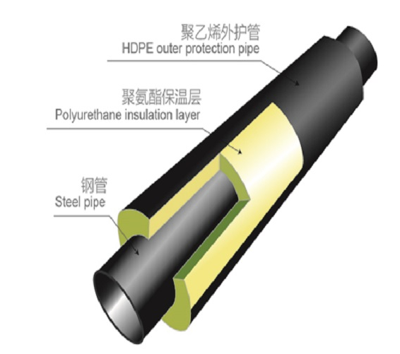 1、聚氨酯直埋保溫管由輸送介質的工作鋼管、聚氨酯硬質泡沫塑料保溫層和高密度聚乙烯外護管緊密結合而成,保溫層內有支架和報警線。